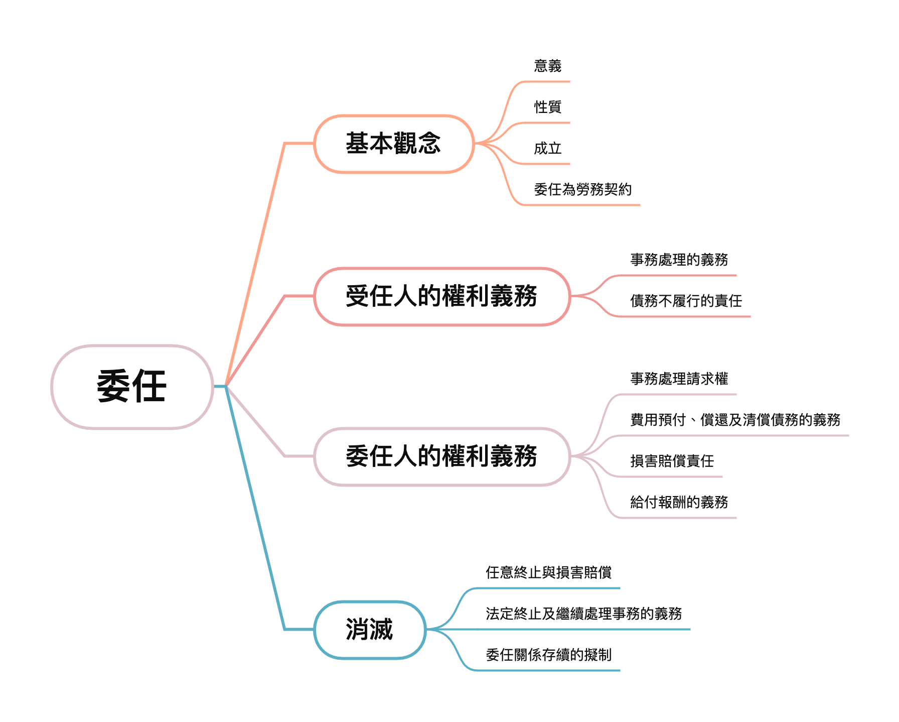 在這幾篇對於勞務提供上可能成立的契約類型,終於在本話中的「委任契約」劃下句點,「委任」是一種委任人委任他人為自己處理事情的契約,在委任的法律關係中,不一定有授與「代理」權限與受委任人,這是很多人所誤為的點,總認為委任某人去處理事情就等於可以代理本人,其實不是的。而在勞務給付的契約,若非屬法律所訂的契約種類時,是可以適用民法中關於「委任」的相關規定的!讀者們在讀完本話的介紹後,記得複習一下前面所學的內容,如此一來才會對於這三種勞務契約的認識會更深刻喔!