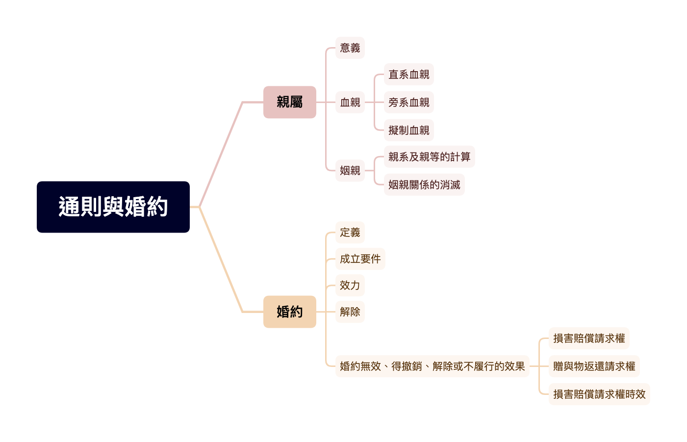 漫長的民法財產法(總則、債編、物權)部分終於結束,接下來進入的又是一個全新的篇章,也就是「身分法」。民法的身分法部分包含了「親屬編」以及「繼承編」,其中親屬編內容是關於各種身分關係,如父母子女、夫妻、收養、結婚及離婚;繼承編則是在自身或家人親屬死亡後遺產的歸屬等。身分法的法條從民法第967條開始到第1225條為止,比財產法少很多,但重要性絕對不下於財產法,尤其是考試中基本必出,在生活上的實用性也相當高且重要。所以無論是出於考試的目的或是實用性,身分法念起來CP值絕對夠高。
