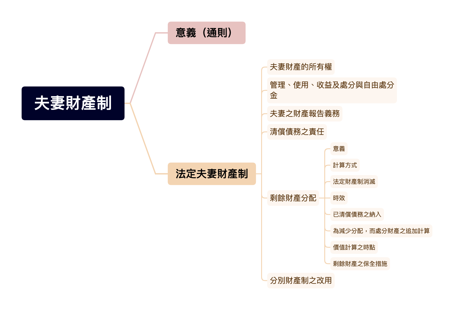 夫或妻之財產分為婚前財產與婚後財產,由夫妻各自所有。不能證明為婚前或婚後財產者,推定為婚後財產;不能證明為夫或妻所有之財產,推定為夫妻共有。